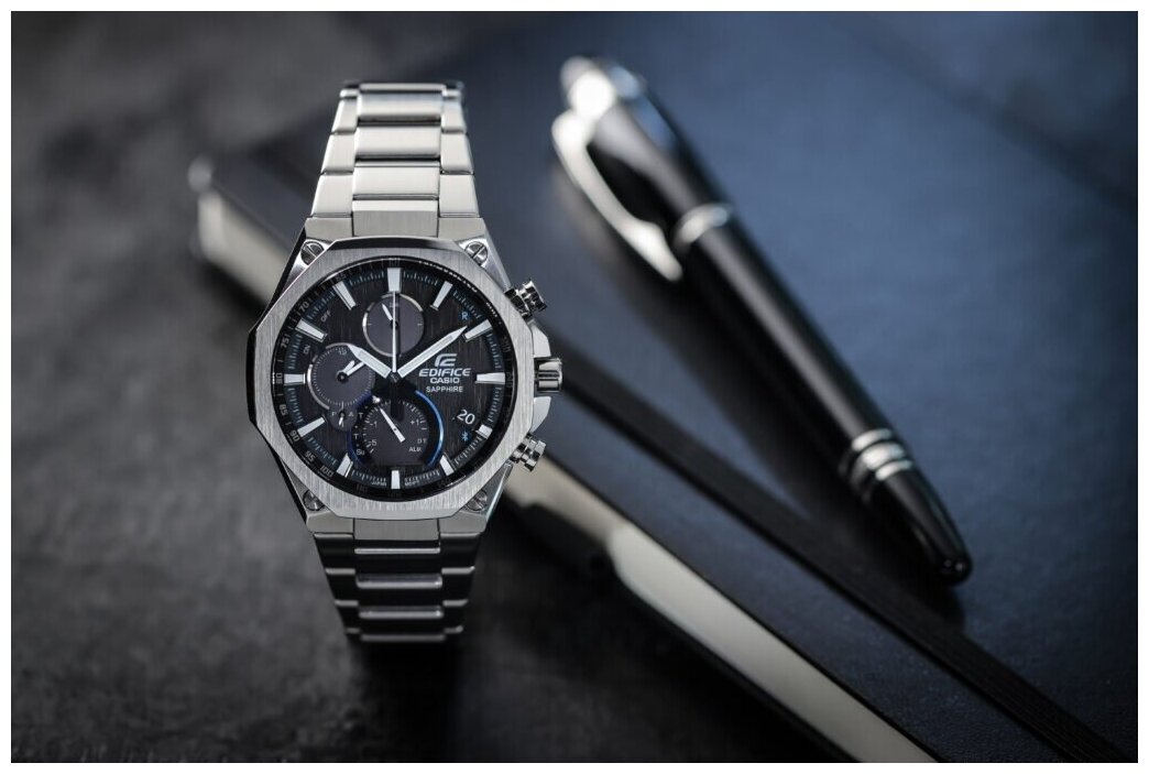 Часы японские наручные мужские кварцевые на браслете Casio EQB-1100D-1A с Bluetooth интересное: