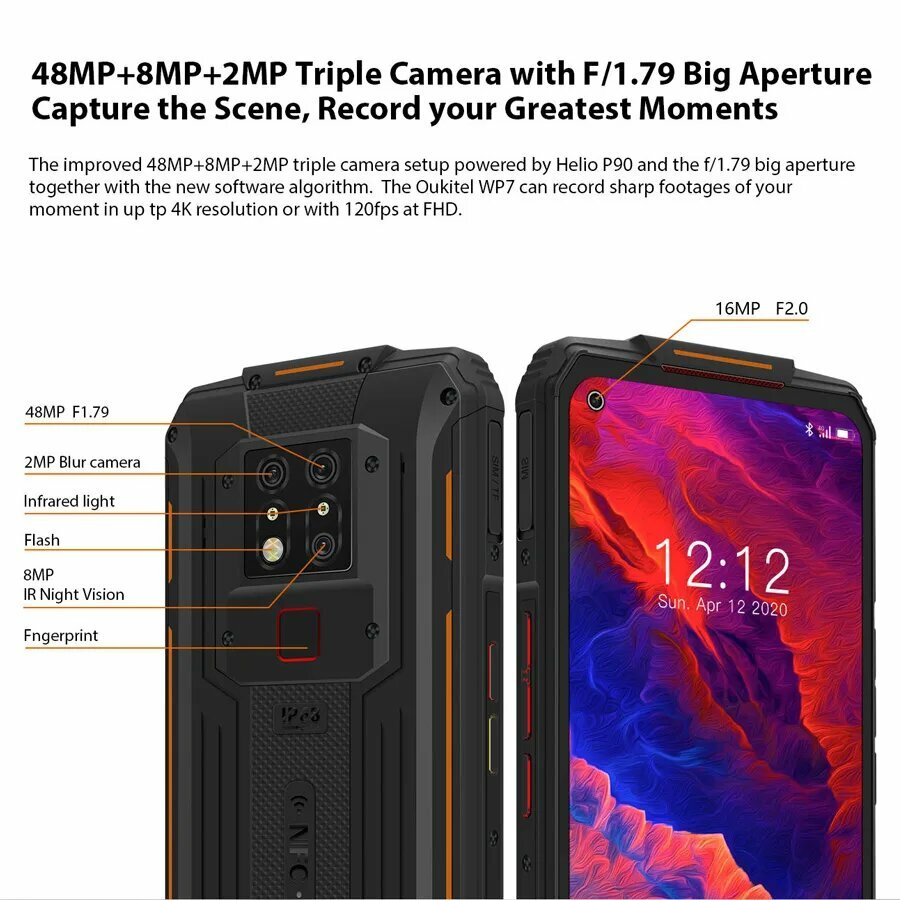 Смартфон OUKITEL WP7 6/128 ГБ, черный/оранжевый