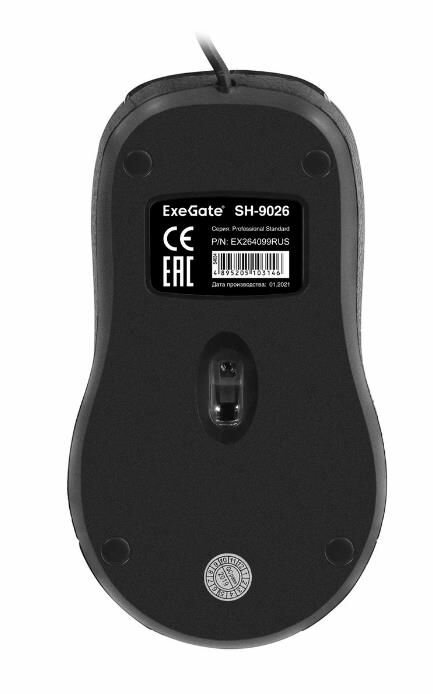 Мышь ExeGate Professional Standard SH-9026 (USB, оптическая, 1000dpi, 3 кнопки и колесо прокрутки, длина кабеля 1,35м, черная, Color Box) EX264099RUS