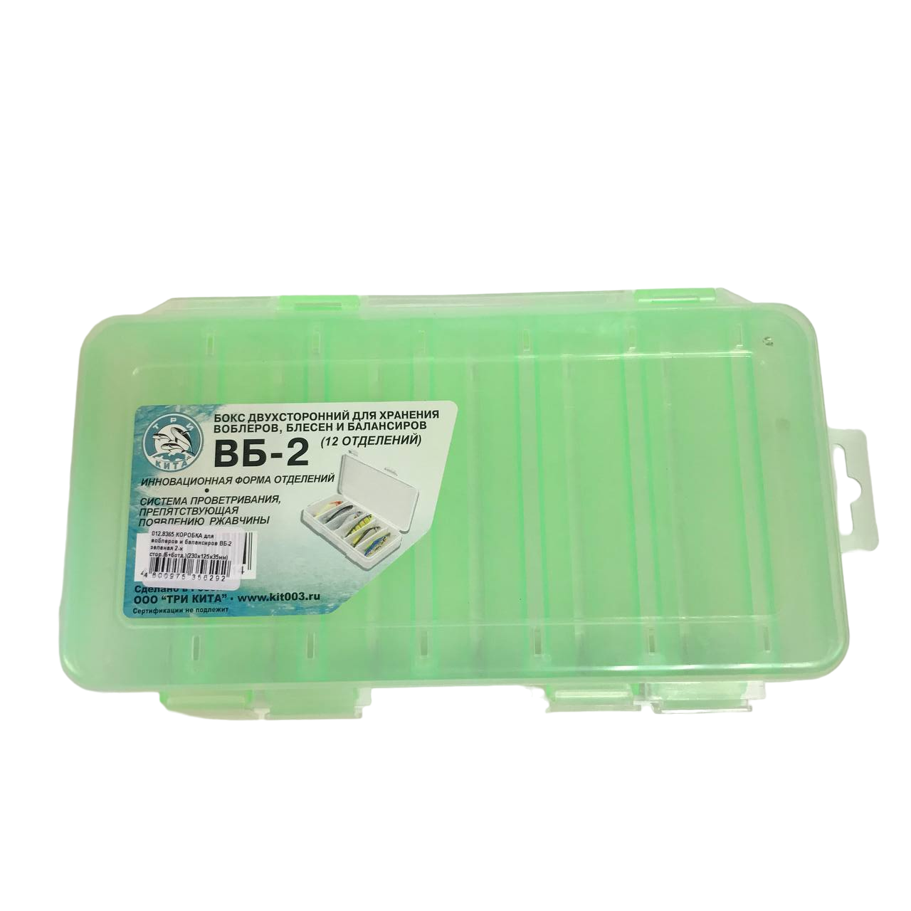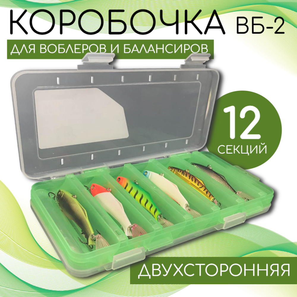Купить Коробка для воблеров и балансиров ВБ-2 зеленая 2-х стор.(6+6отд.)(230х125х35мм)