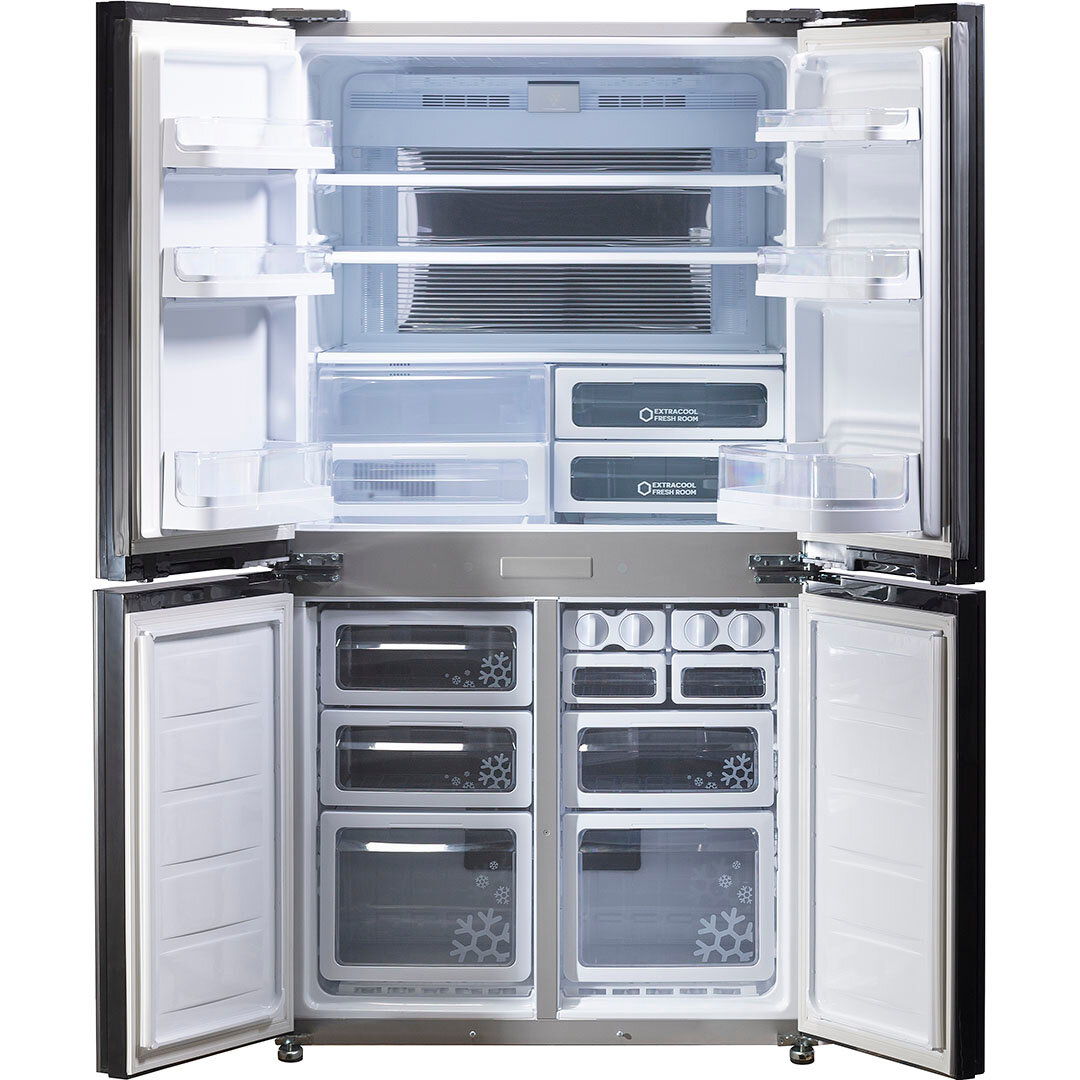 Широкие полки на дверях. Ящики с "0" зоной для мяса, рыбы, колбасы. Большой ящик для фруктов и овощей. |