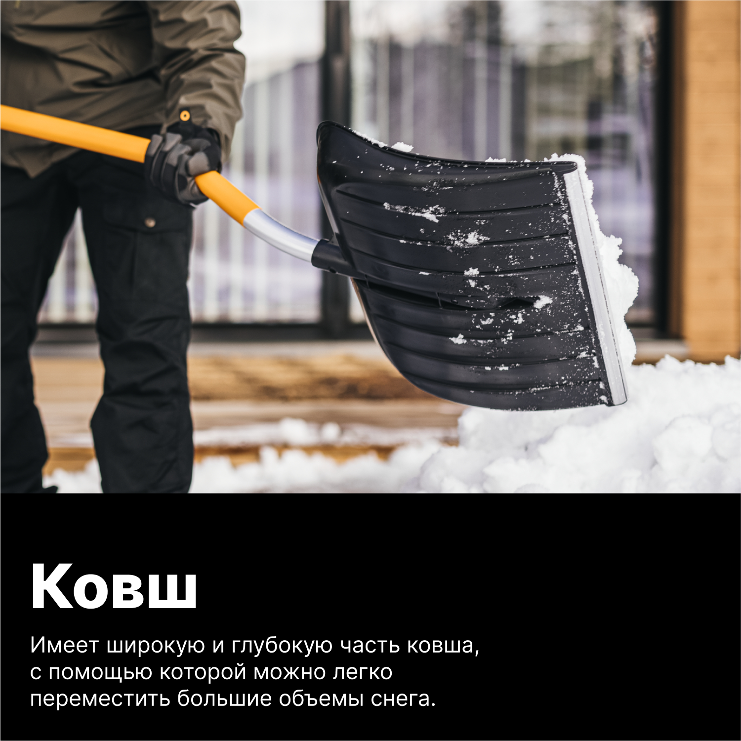 | Плюсы: | Лёгкость, прочность, удобство работы, эргономика, легко слетает снег, без прилипаний. |