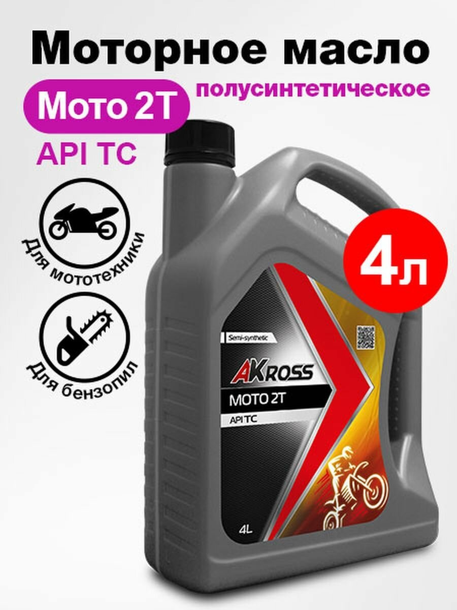 Масло моторное 2-х тактное AKROSS мото полусинтетическое 4 л AKROSS AKS0027MOS | цена за 1 шт