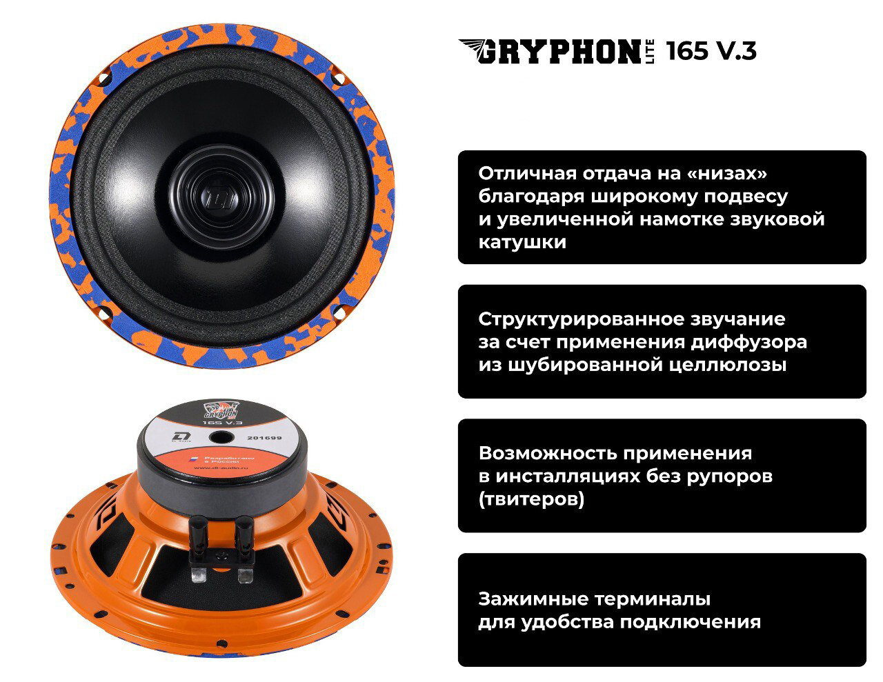 Колонки автомобильные Gryphon Lite 165 v2 (цена за пару)
