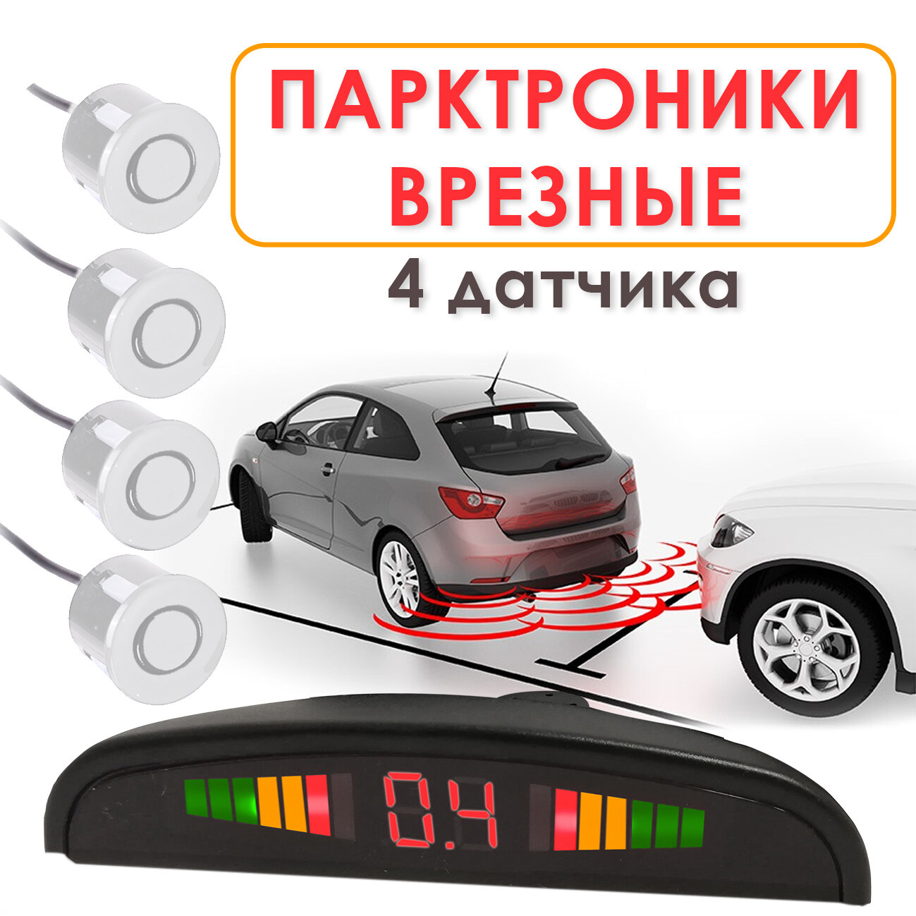 Парковочный радар Takara TPS-220, парктроники 4 шт, серебристый