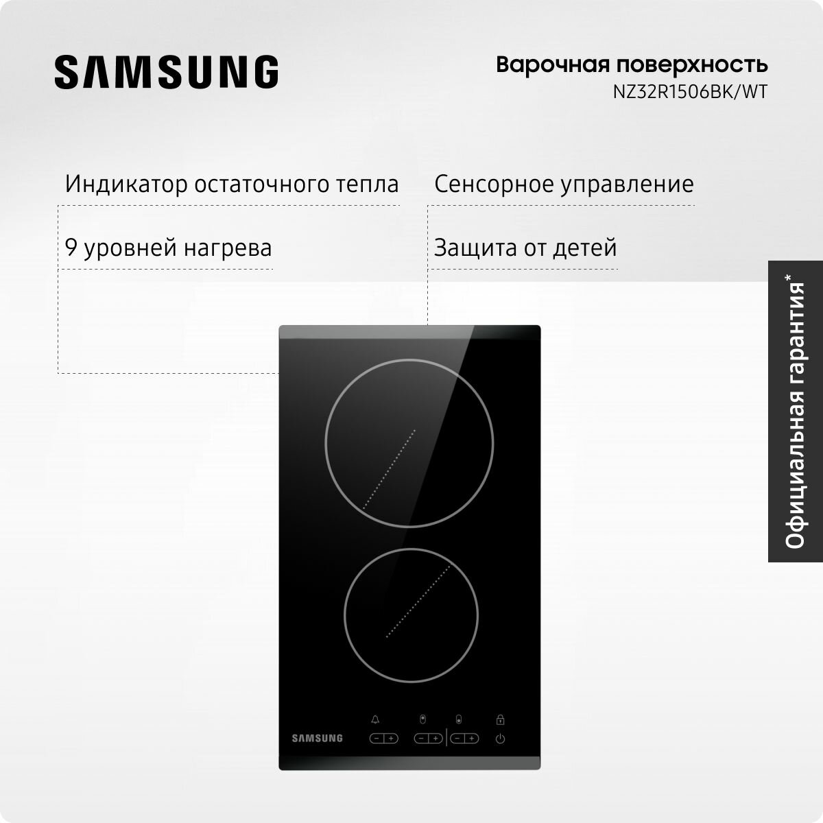 Стеклокерамическая варочная поверхность Samsung NZ32R1506BK/WT, 2 конфорки, сенсорное управление, 9 уровней нагрева, черная