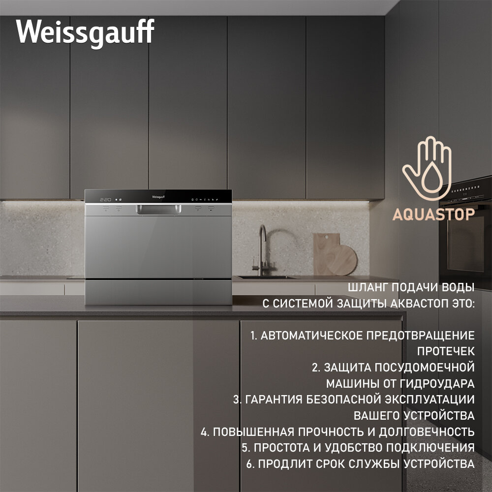 Настольная посудомоечная машина Weissgauff TDW 4017 D 3 года гарантии, быстрый режим, таймер, функция самоочистки, возможность дозагрузки посуды