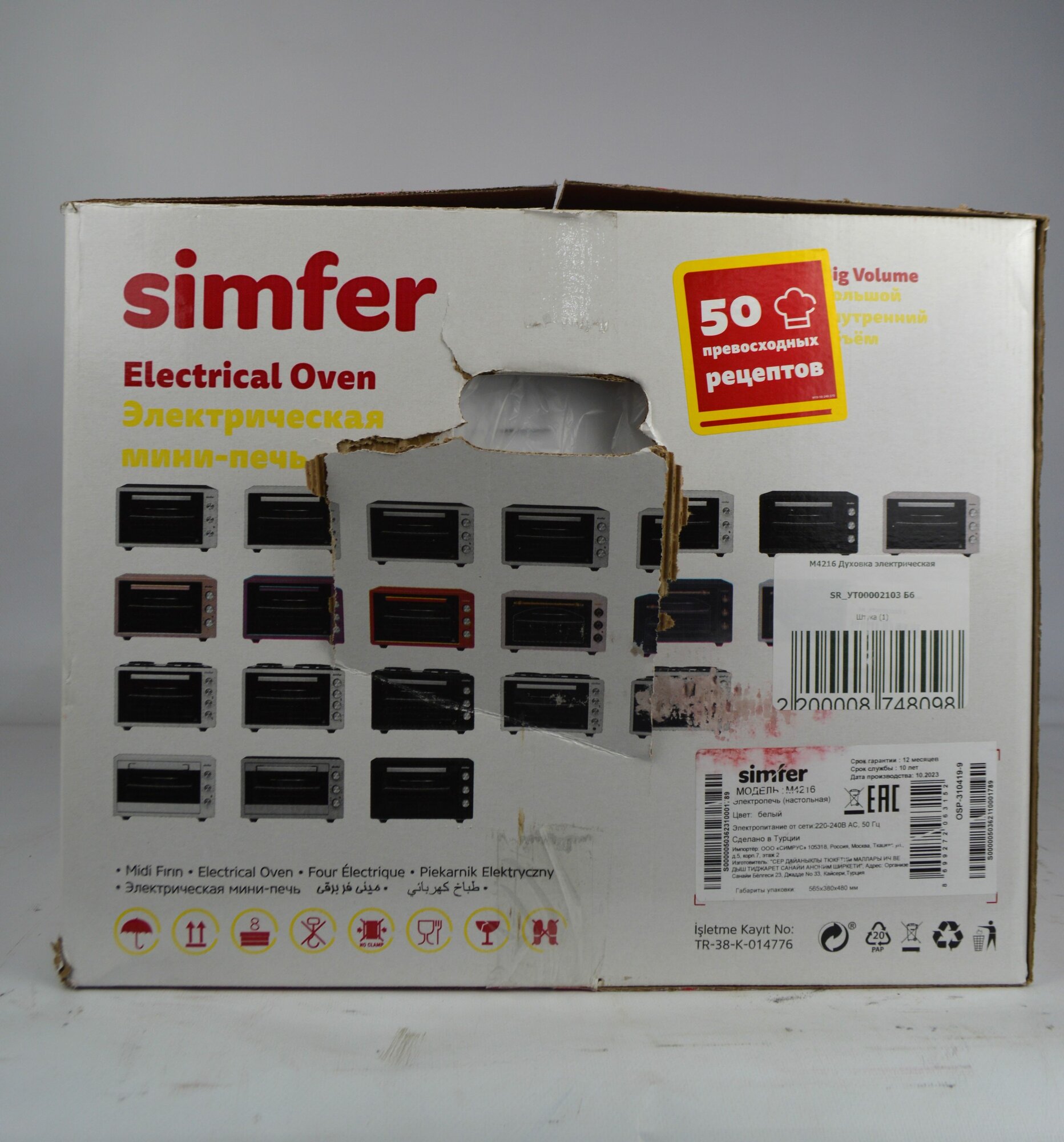 | Минусы: | Очень сильно нагревается фронтальная сторона (стекло, невозможно прикасаться), корпус также невозможно задеть при внутреннем нагреве до 180 градусов, обжигает. При нагреве идет дым изнутри, как будто плавится пластик, очень сильно пахнет токсичным дымом. Корпус замят в некоторых местах, или наоборот выпирает. Ножки также загнуты, стоит неровно, шатается. В общем, 0 баллов. Противень или решетка внутри хлипкая, какую нибудь мясную запеканку в стеклянной посуде для запекания уже не выдержит. |