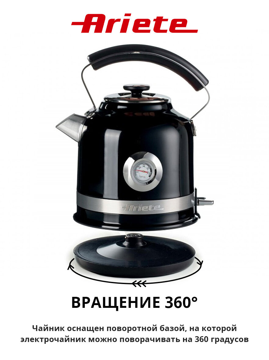 Купить Электрический чайник ARIETE 2854 BK INT(Цвет: Черный; Мощность: 2000Вт)