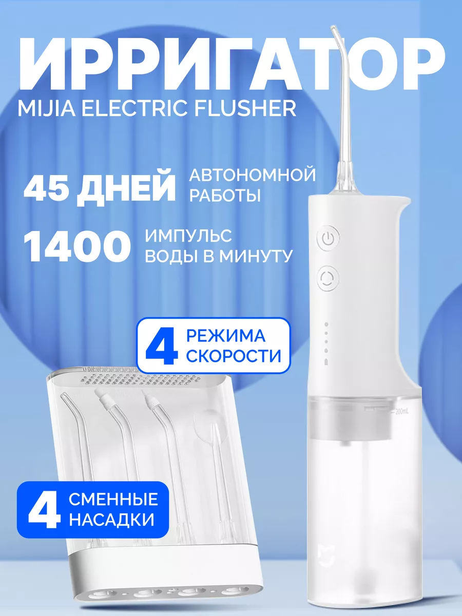 Ирригатор Xiaomi Mijia Electric Flusher (MEO701) белый, для полости рта и зубов с насадками