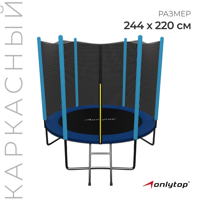 Батут ONLYTOP, d=244 см, с внешней защитной сеткой и лестницей, цвет синий