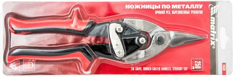 MATRIX Ножницы по металлу, 250 мм, пряморежущие, для тонкого металла, обрезиненные рукоятки Matrix, ( 78330 )