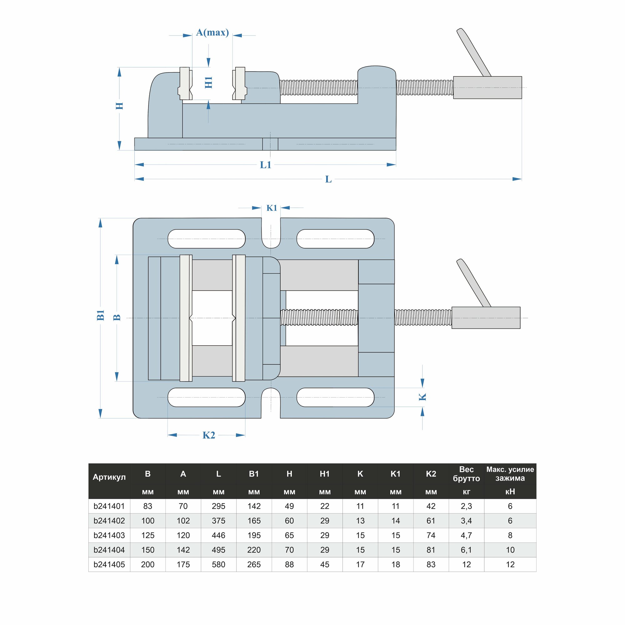 GRIFF Тиски станочные для сверлильных станков 80мм, A/max/=50мм, вес=2.3кг, серия Q19 b241401 интересное: