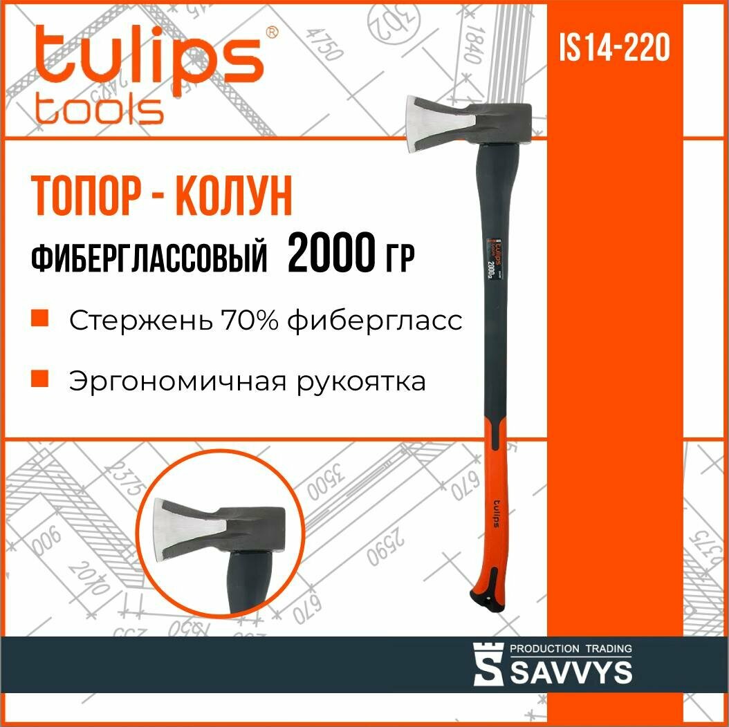 Tulips tools Топор-колун 2000 г фибергласс длинная рукоятка IS14-220
