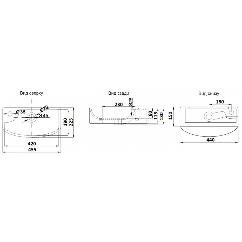 | Число размеченных отверстий под смеситель | отсутствуют |