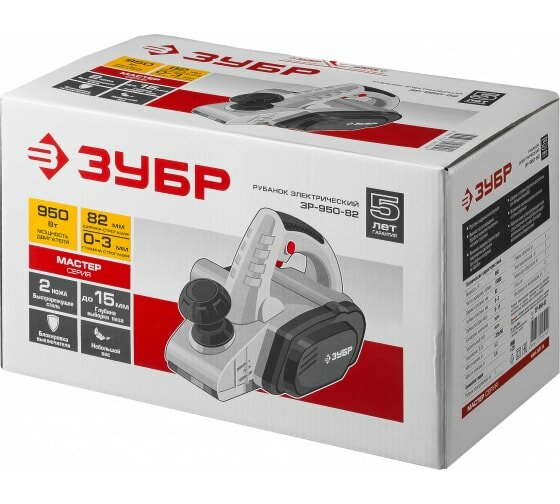1 Рубанок электрический, 950 Вт, 15000 оборотов/мин, глубина 3 мм, ширина 82 мм, ЗУБР ЗР-950-82