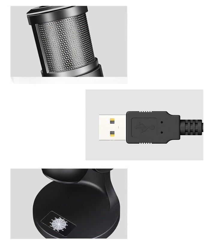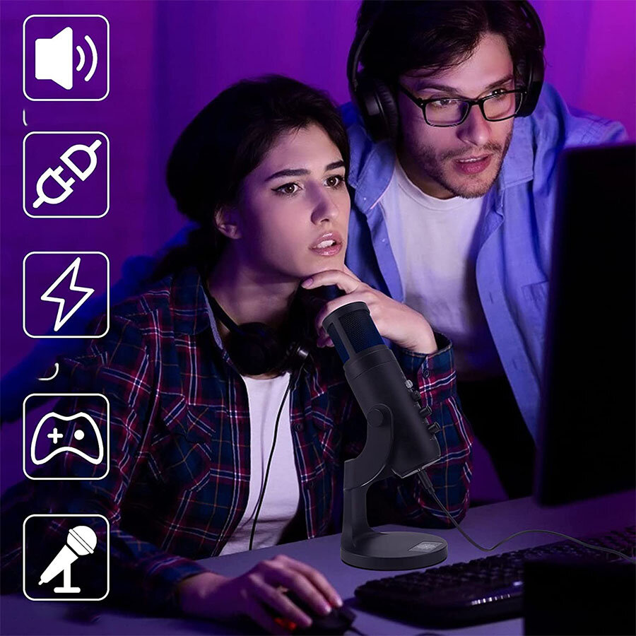 Купить Микрофон универсальный кардиоидный JMARY MC-PW9 RGB, USB/Type-C+Jack 3.5 mm, 1.8 м, черный