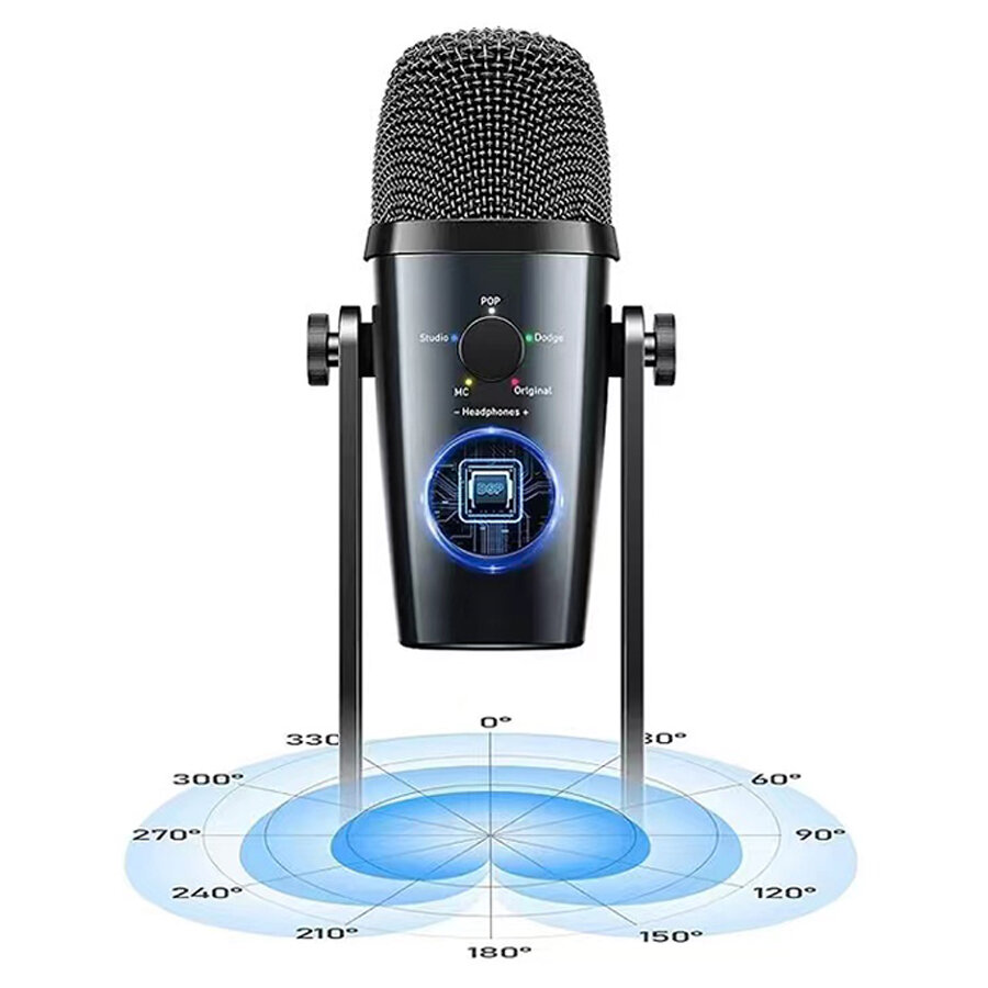Микрофон универсальный кардиоидный JMARY MC-PW9 RGB, USB/Type-C+Jack 3.5 mm, 1.8 м, черный