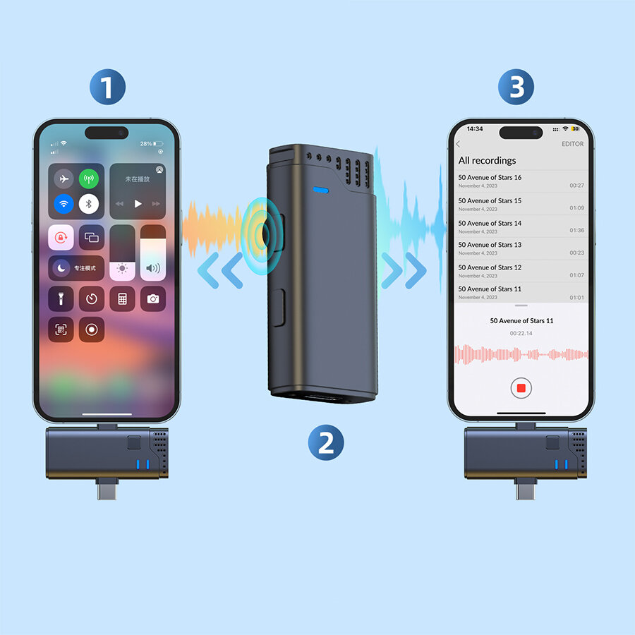 Микрофон петличный беспроводной, с шумоподавлением, петличка, для мобильного телефона, разъем Lightning, для Iphone, черный, 2шт