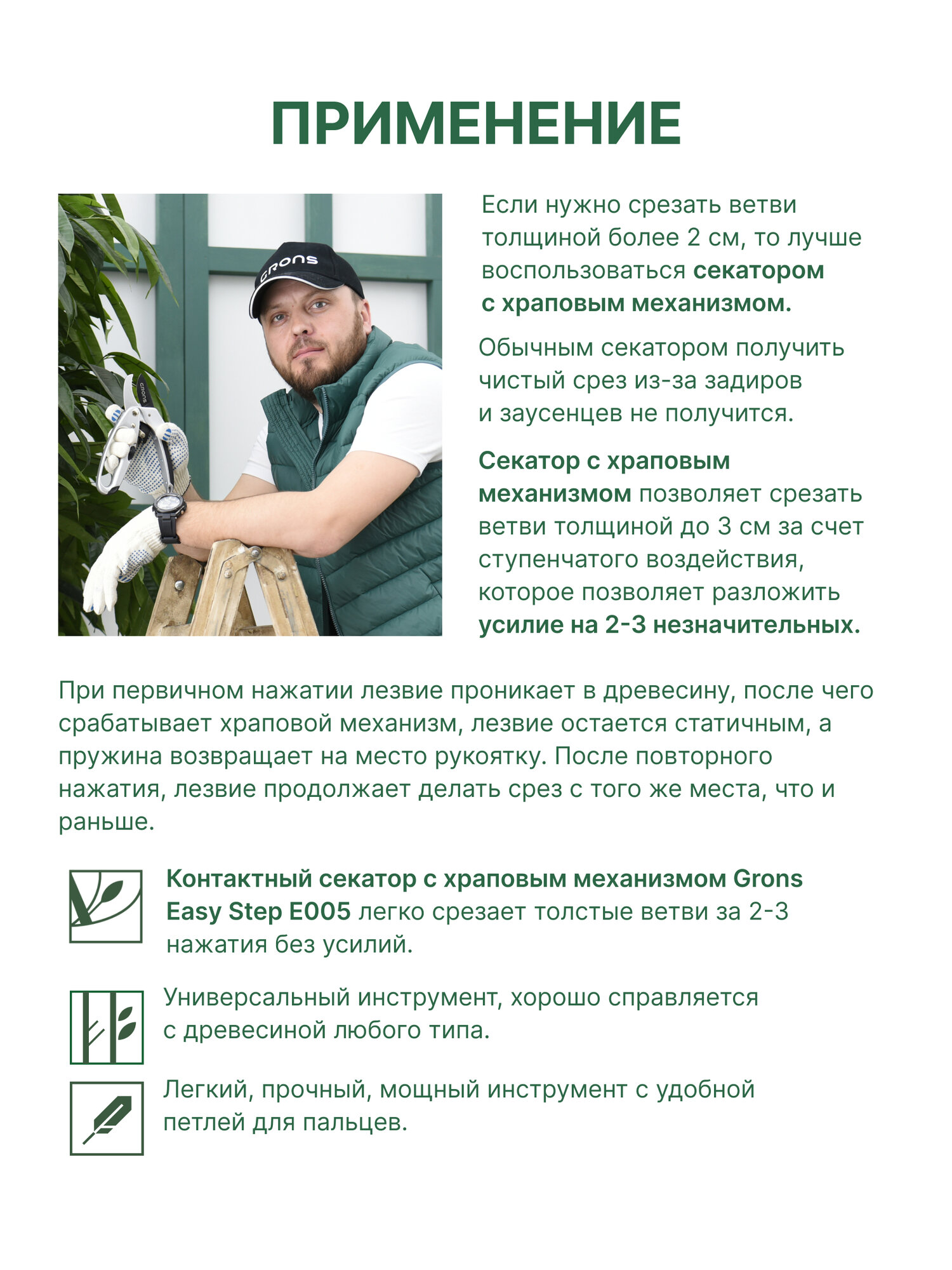 Grons / Секатор садовый для обрезки веток деревьев, кустарников, растений, с храповым механизмом / Ножницы-кусторез профессиональные EasyStep E005 интересное: