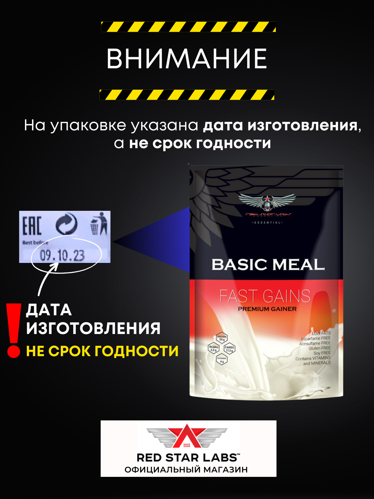 Гейнер для набора массы Basic Meal от Red Star Labs 900г клубника интересное: