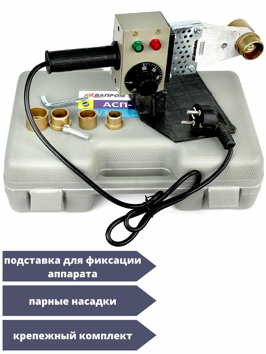 Аппарат для сварки пластиковых труб "аквапром" АСП-1,5 (P40/3) кейс пластик