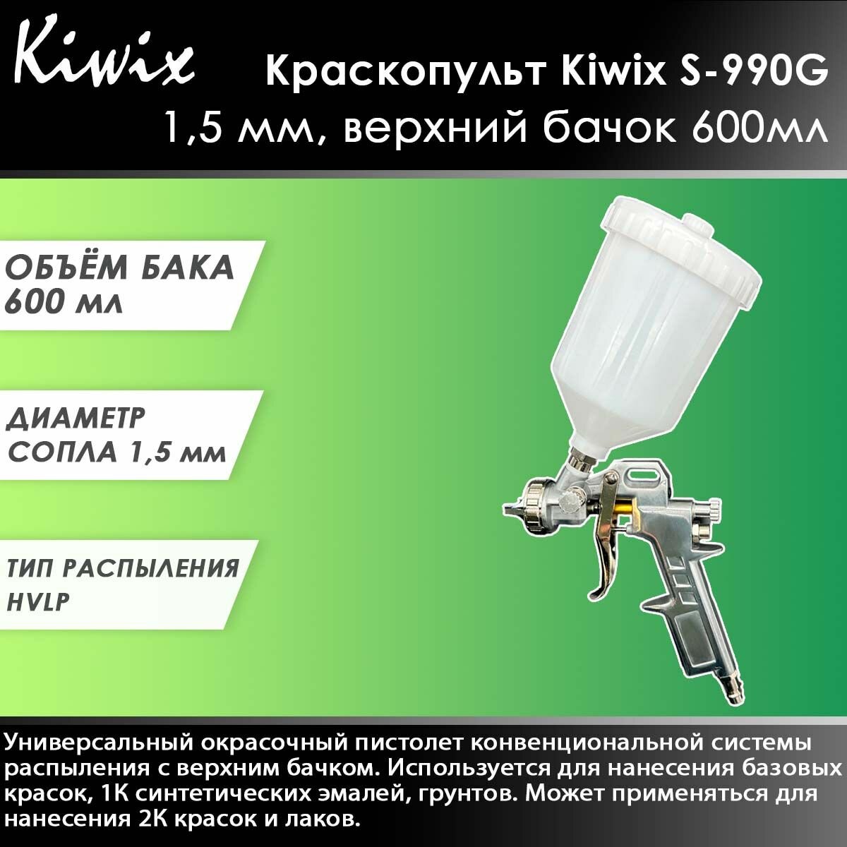 Краскопульт Kiwix S-990G 1,5 мм, верхний бачок 600мл