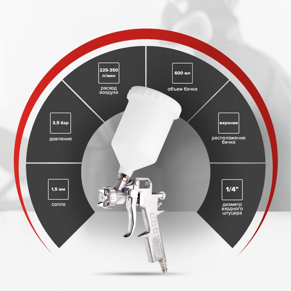 Краскопульт пневматический профессиональный REMIX S-990G HVLP дюза 1,5 мм, с бачком 600 мл / для компрессора/RM-S-990G-15 интересное: