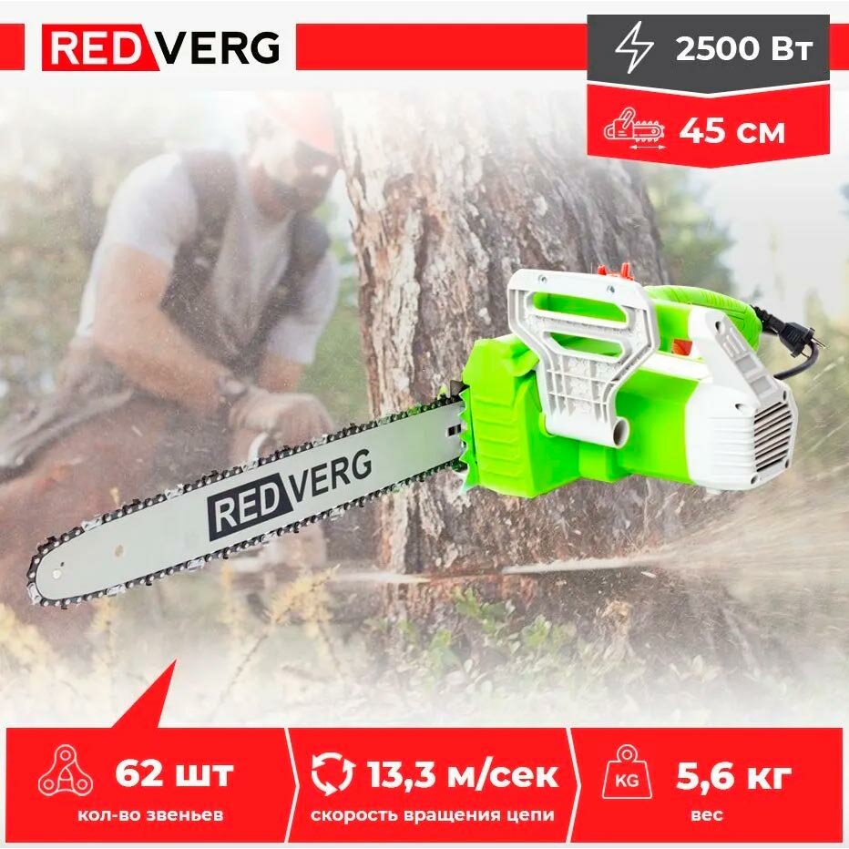 Электропила REDVERG Электрическая цепная 2500Вт 3.4л.с. дл.шины:18" (45cm)