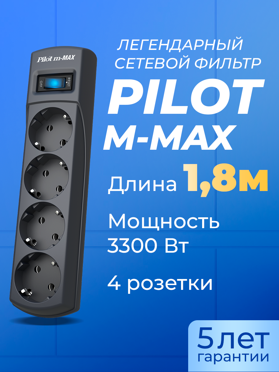 Сетевой фильтр PILOT m MAX (4/1,8м/16А/150Дж/темн.серый), 1017072