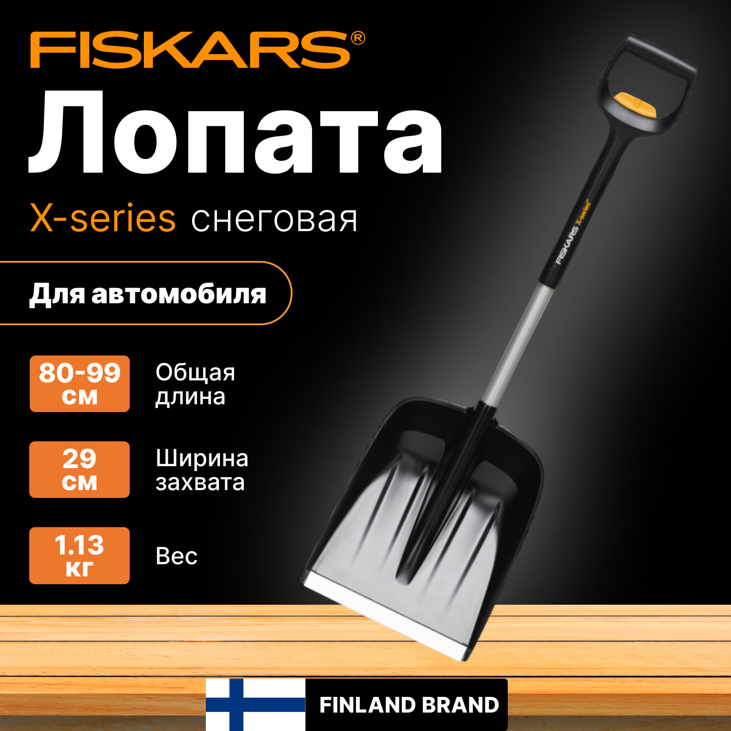 Лопата снеговая автомобильная телескопическая X-series FISKARS (длина:795мм, ширина:290мм) (1057187)