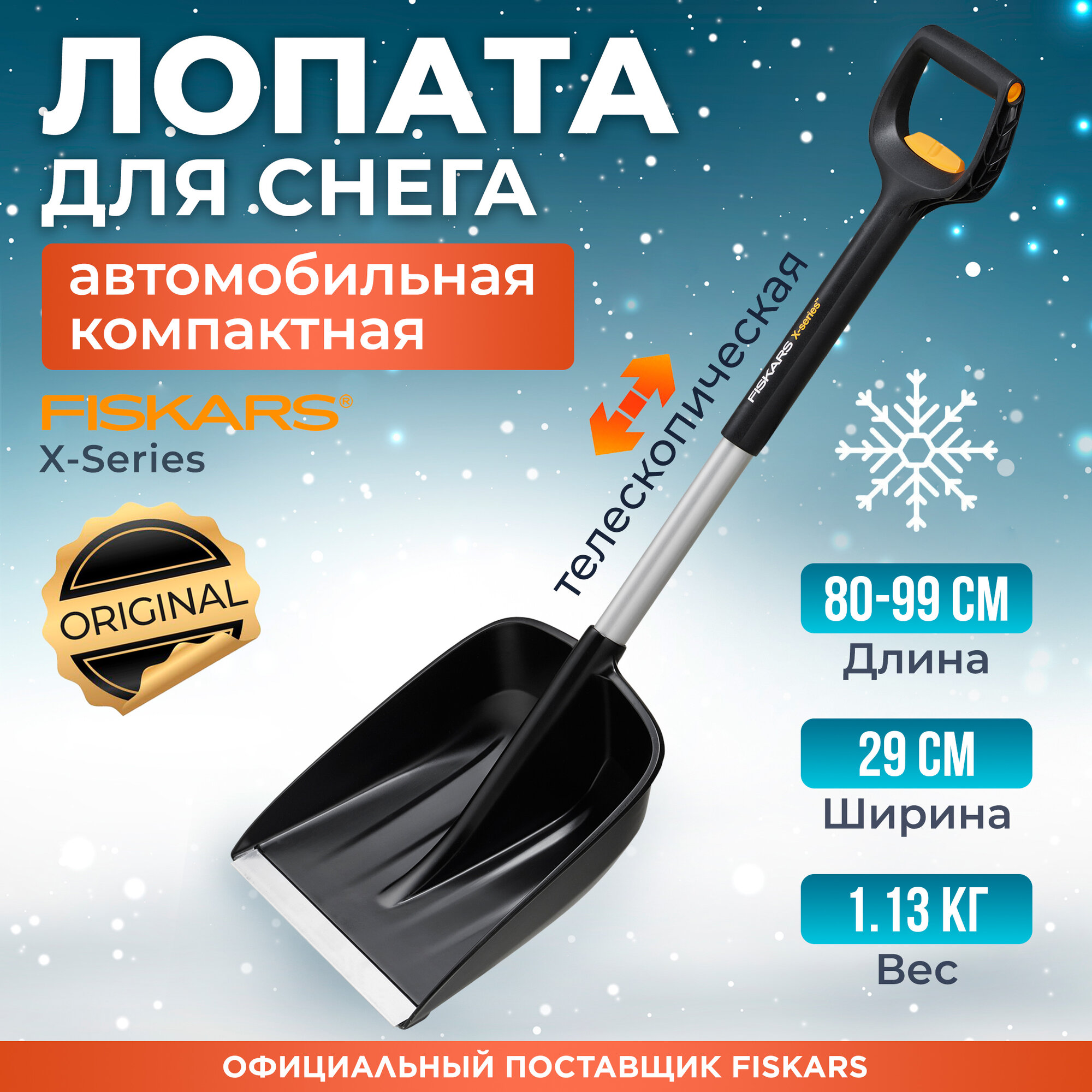 Для уборки снега Лопата автомобильная телескопическая Fiskars X-Series 1057187 .
