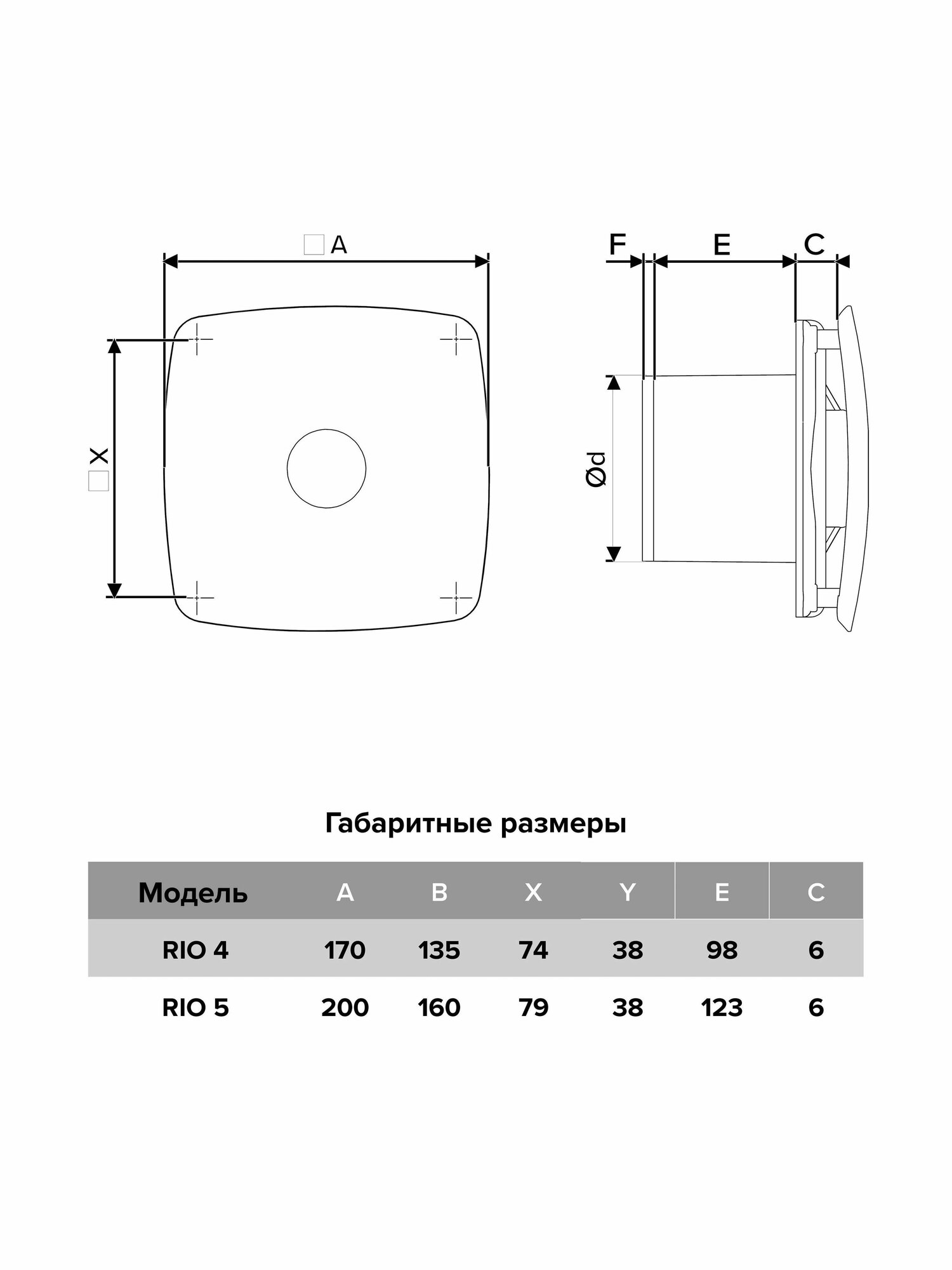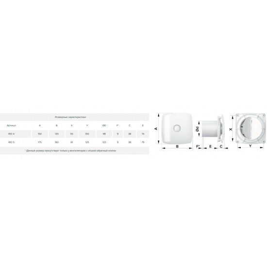 RIO 5C вентилятор вытяжной бесшумный c обратным клапаном на шарикоподшипниках D123