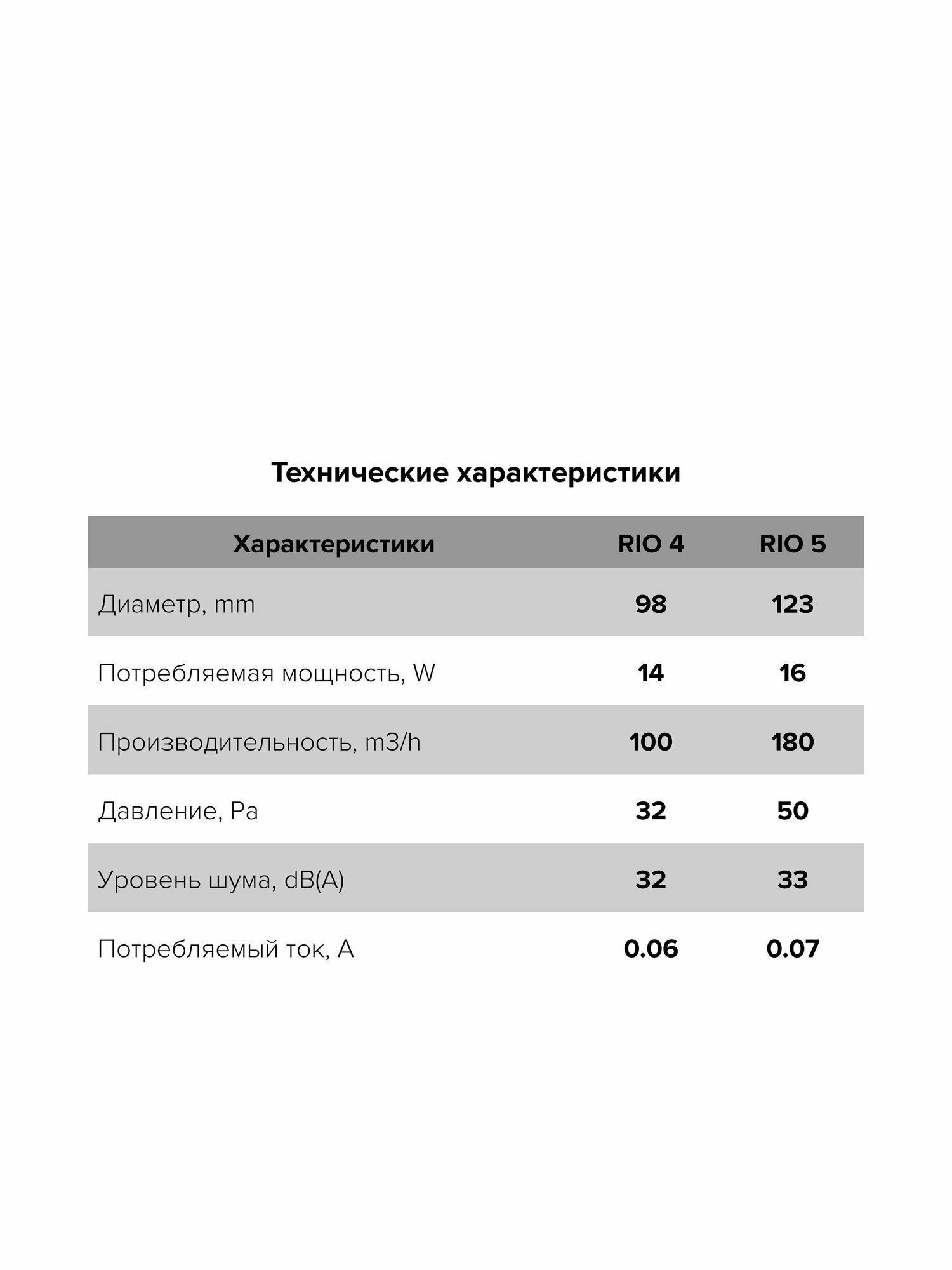 RIO 5C, Вентилятор осевой вытяжной с обратным клапаном D 123