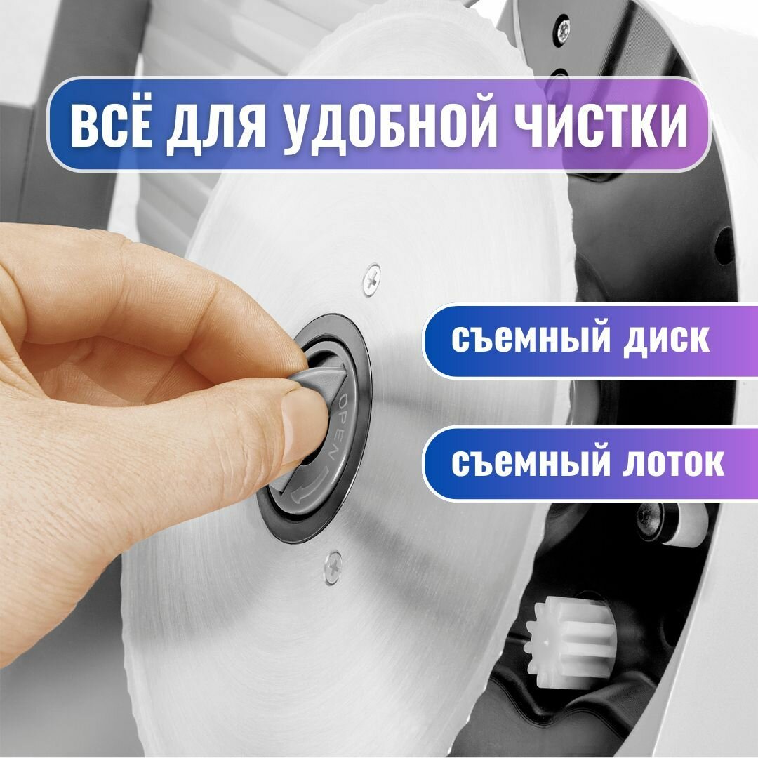 Ломтерезка, ломтерезка электрическая, слайсер для нарезки, 1 скорость работы, 150Вт, регулировка толщены нарезки