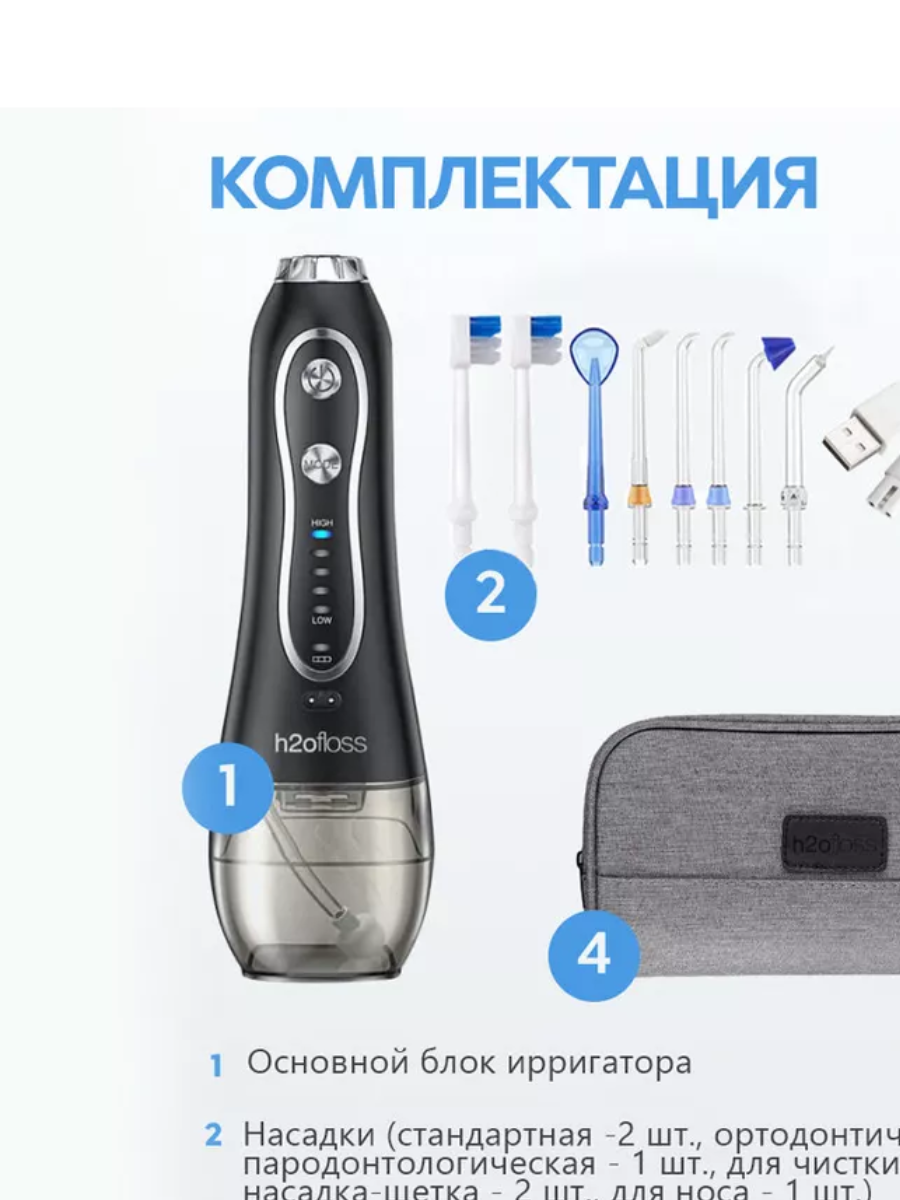 Ирригатор для зубов портативный H2oFloss белый интересное: