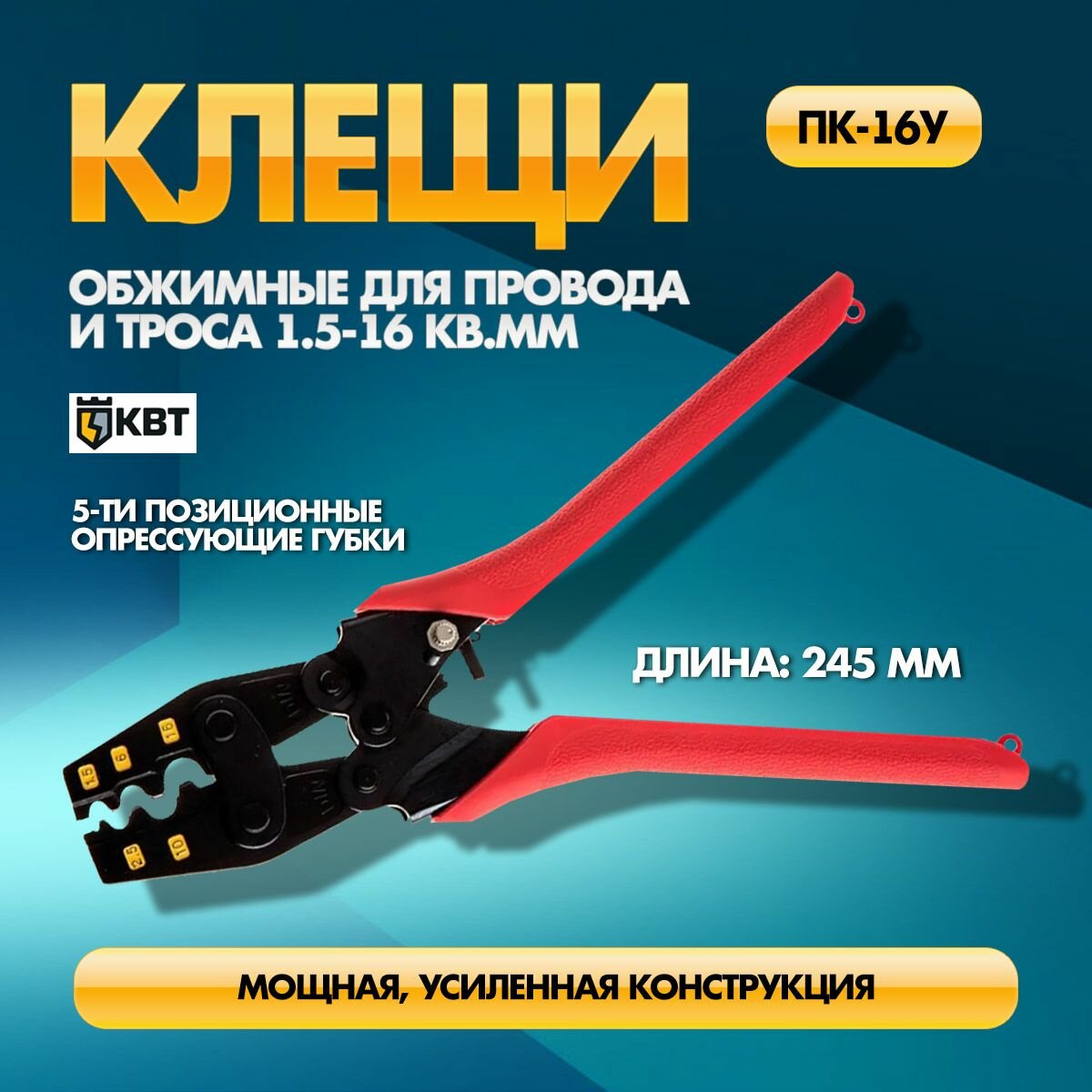 Купить КВТ КВТ Пресс-клещи ПК-16у профи кримпер для опрессовки неизолированных наконечников усиленные КВТ 64702