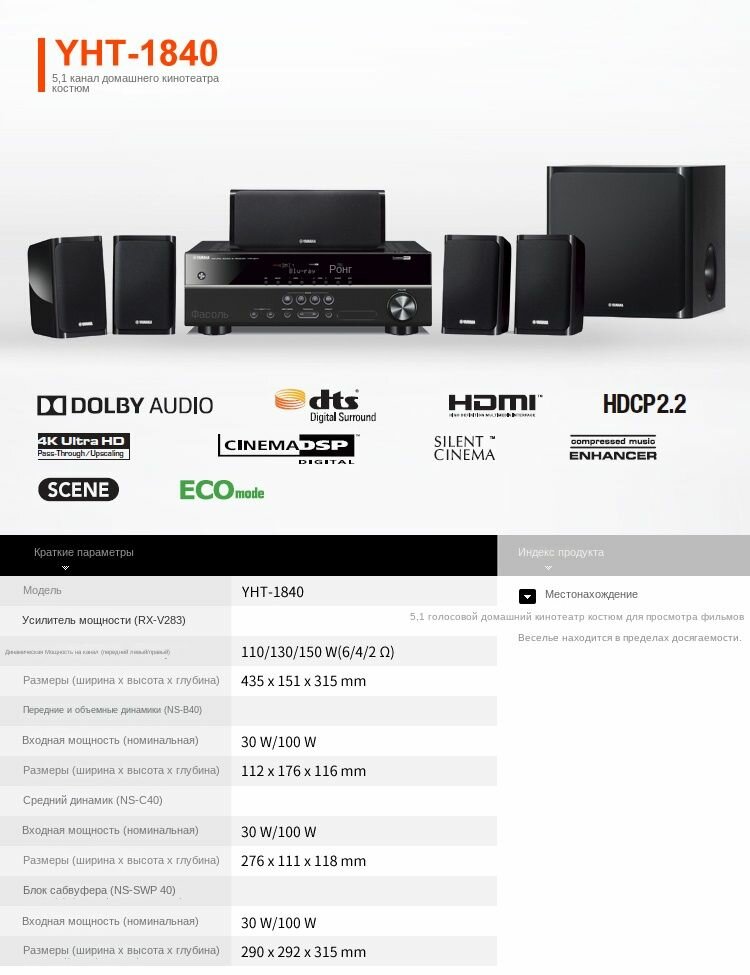 Домашний кинотеатр Yamaha YHT-1840, 5.1, поддержка Dolby Digital II интересное: