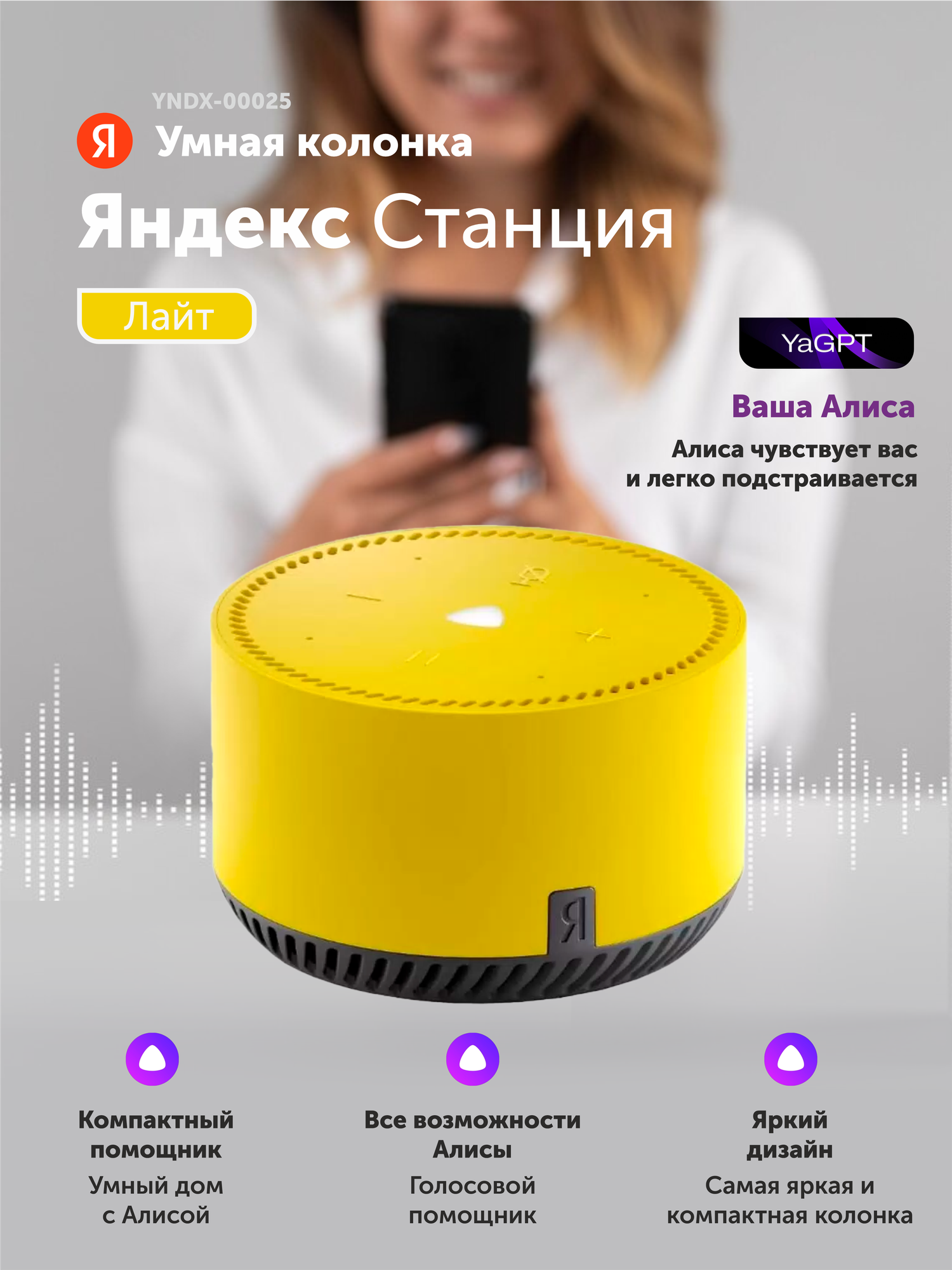 СохранитьУмная колонка Яндекс Станция Лайт с Алисой на YaGPT, желтый лимон (5Вт) (YNDX-00025Y) интересное: