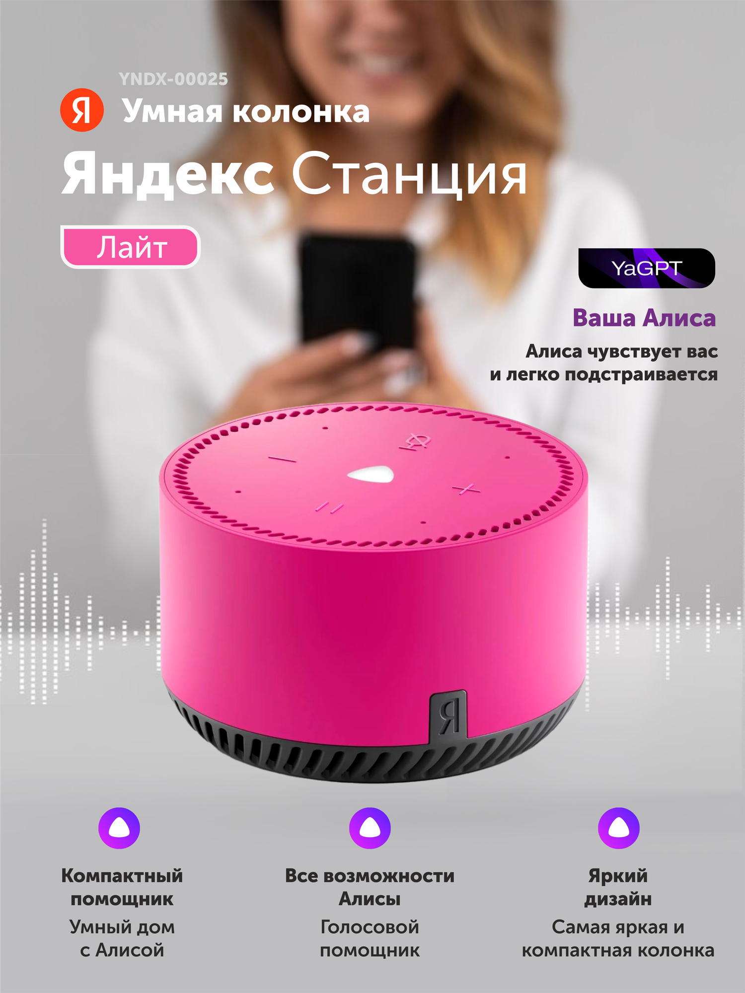 СохранитьУмная колонка Яндекс Станция Лайт с Алисой на YaGPT, розовый фламинго (5Вт) (YNDX-00025N) интересное: