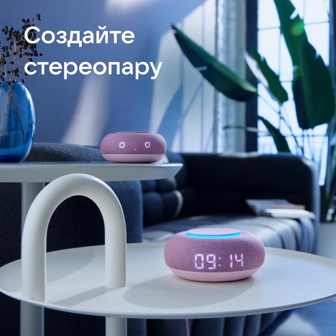 Умная колонка VK Капсула мини (с часами) + в подарок 3 месяца подписки VK, розовый
