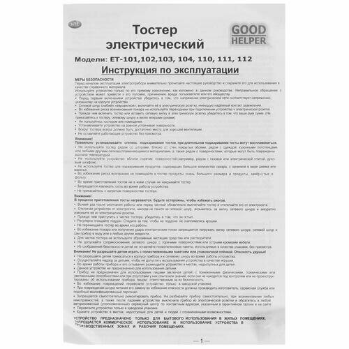 Тостер Goodhelper ET-101