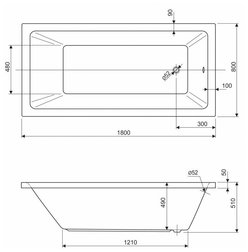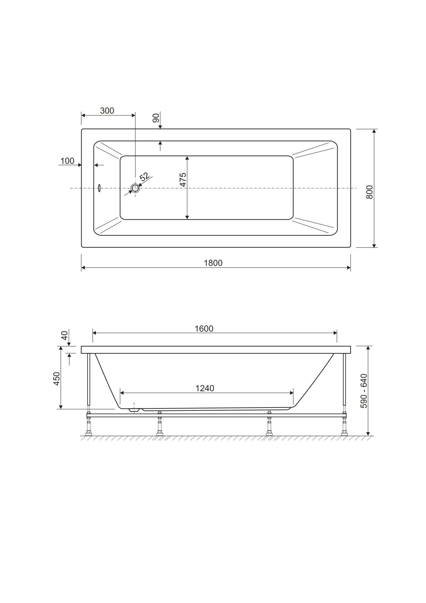 Акриловая ванна Cezares Plane Solo 180x80 PLANE SOLO-180-80-49-W37 без гидромассажа