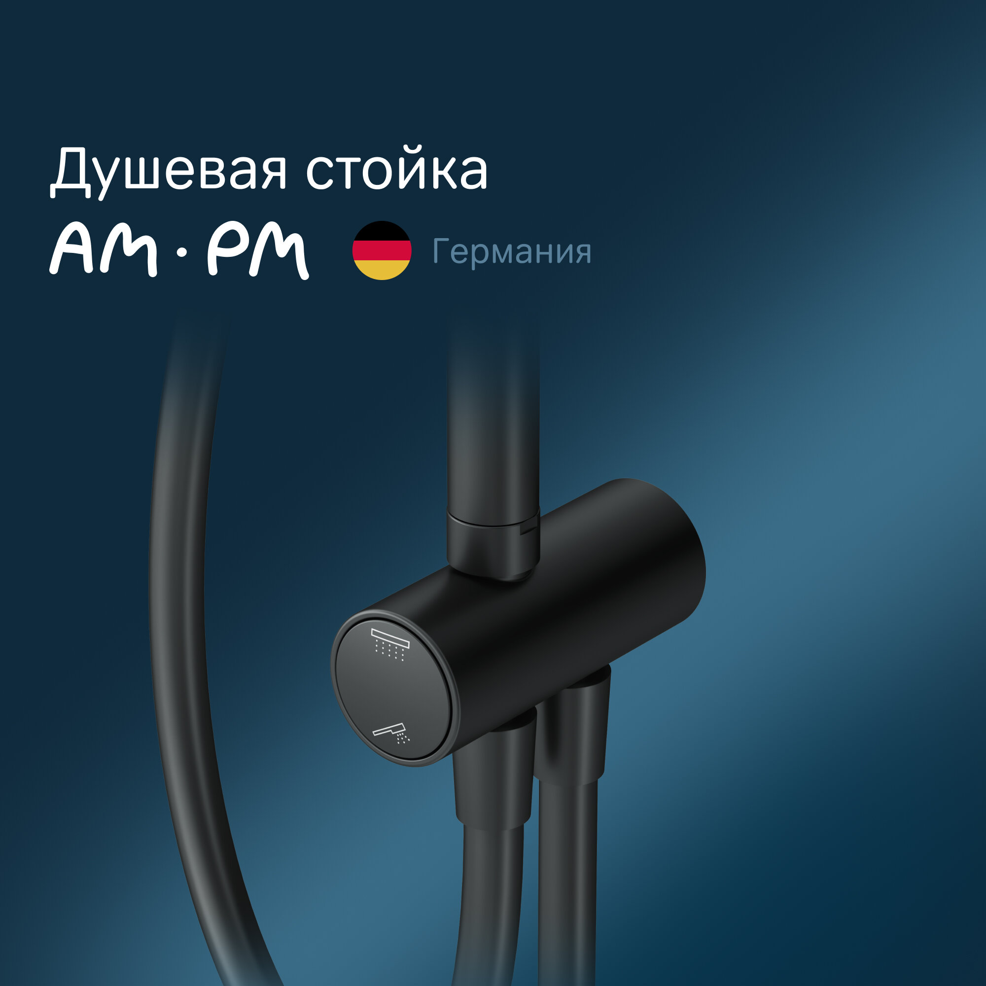 Душевая система с тропическим душем AM.PM Gem черный, поворотный верхний душ 220мм, без излива интересное: