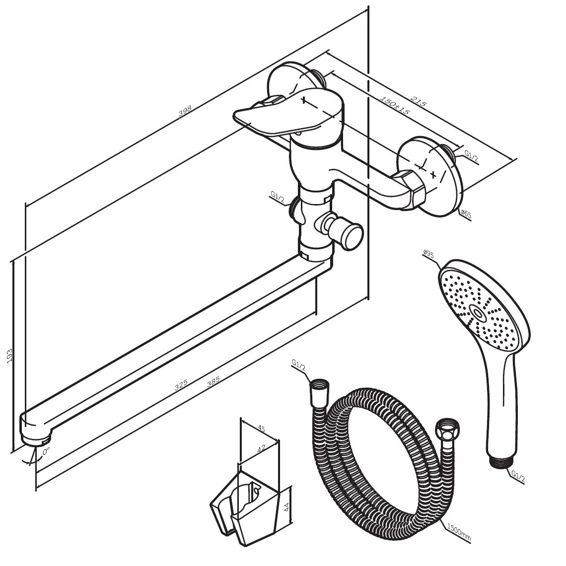 | Высота стойки для душа | 1030 мм |