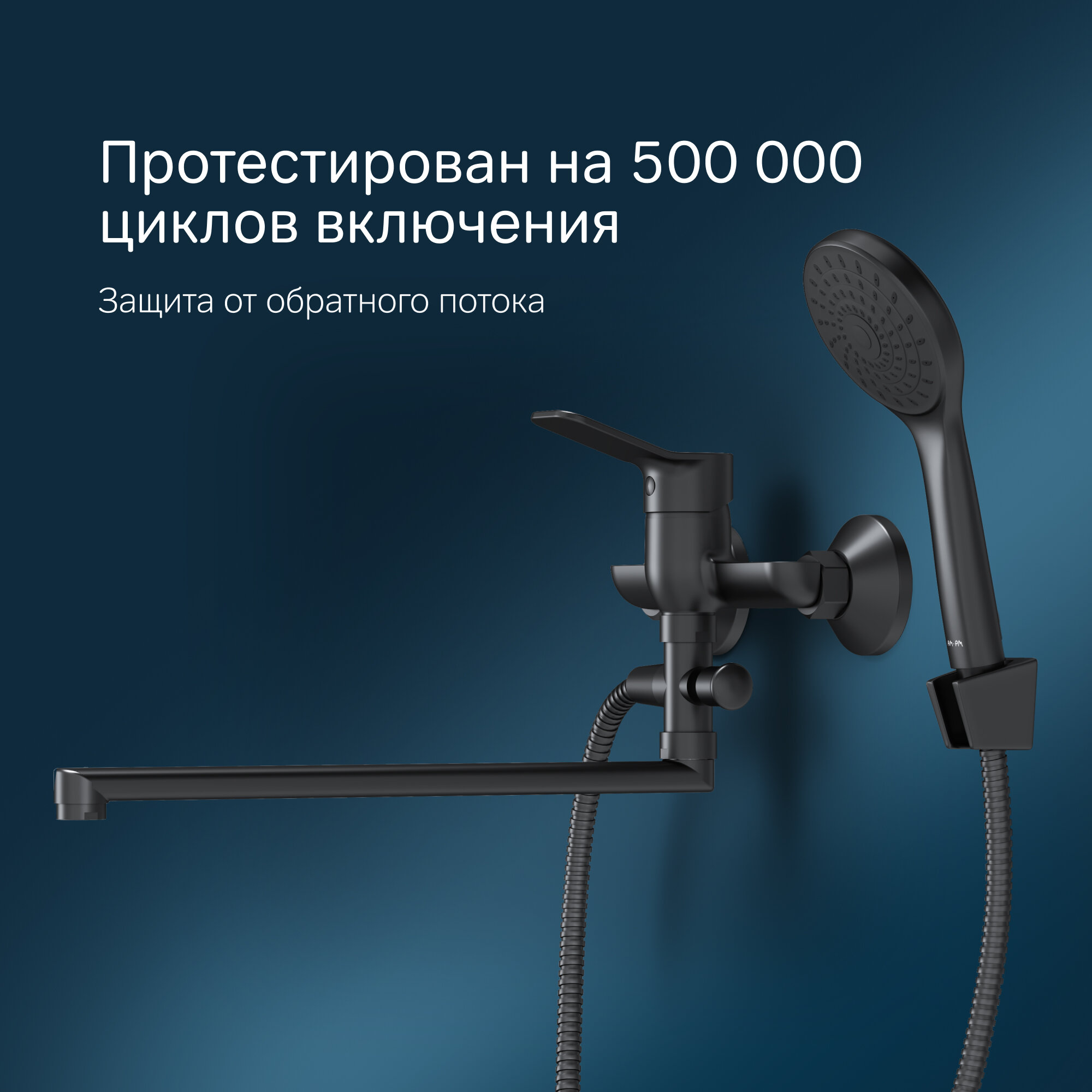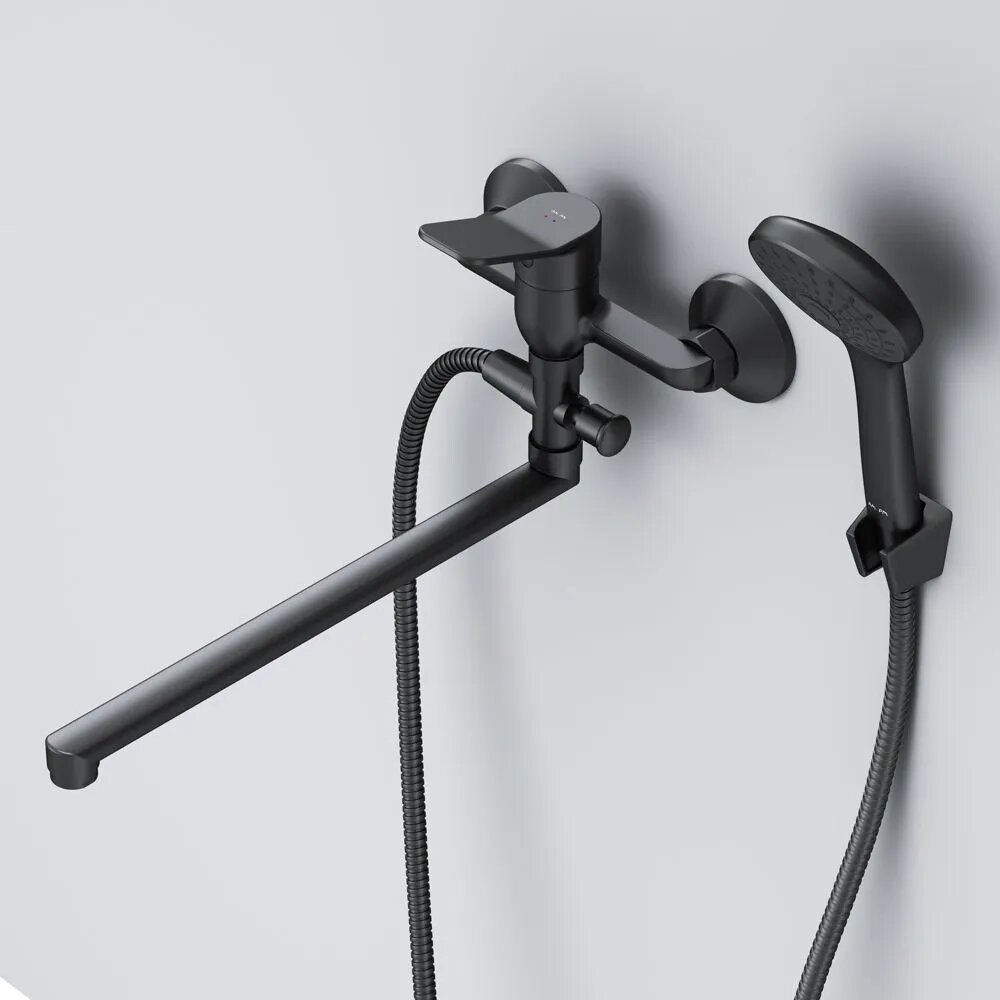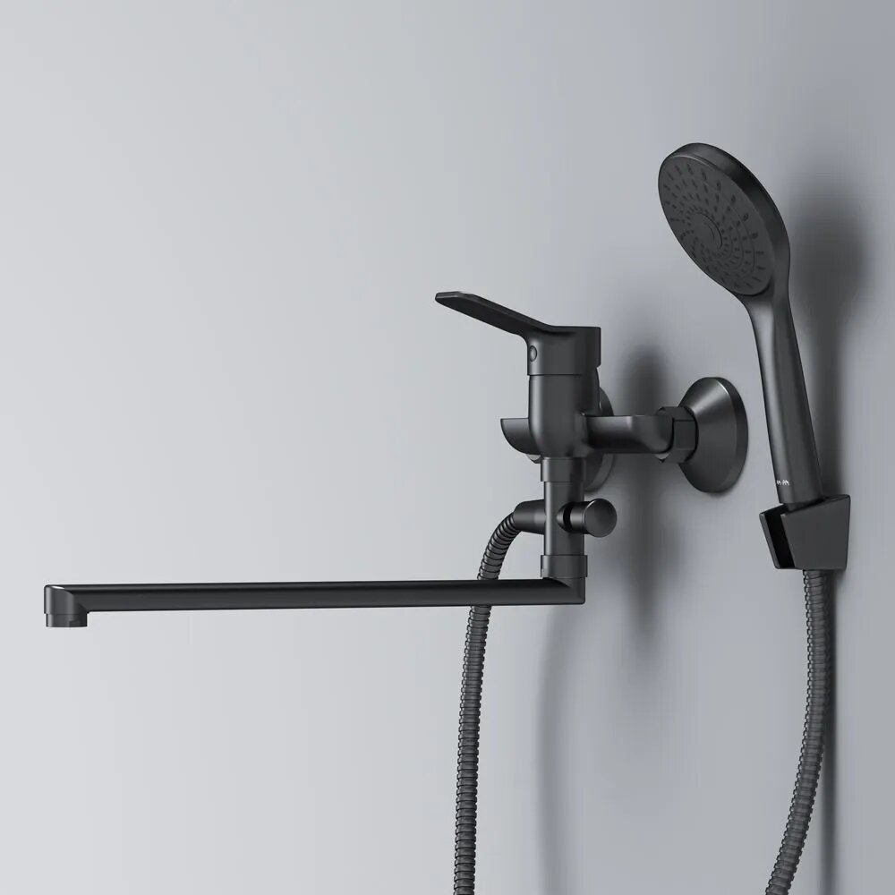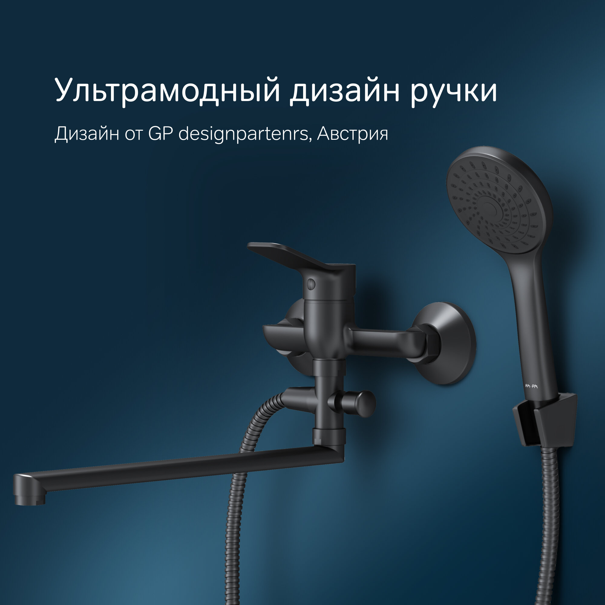 Смеситель для ванны с душем AM.PM X-Joy, с длинным изливом 350 мм, латунь, черный