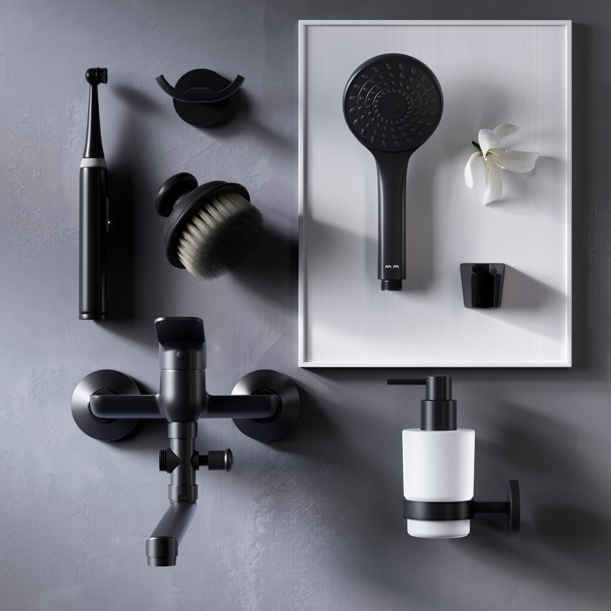 Душевой комплект AM.PM Gemчерный, шланг для душа с лейкой, держатель