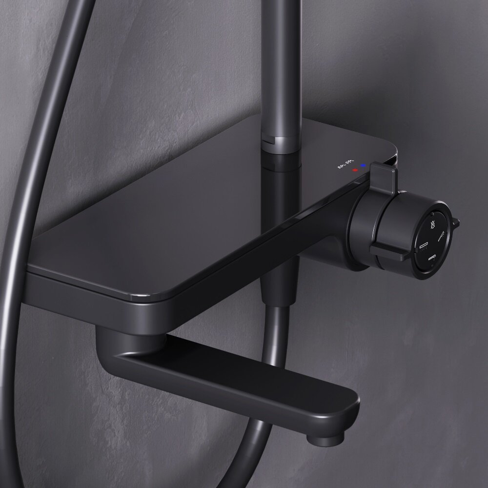 F0780722 Душевая система AM.PM Like смеситель-полка, душевая штанга 1030-1460 мм, верхний душ 220 мм, ручной душ, черная матовая