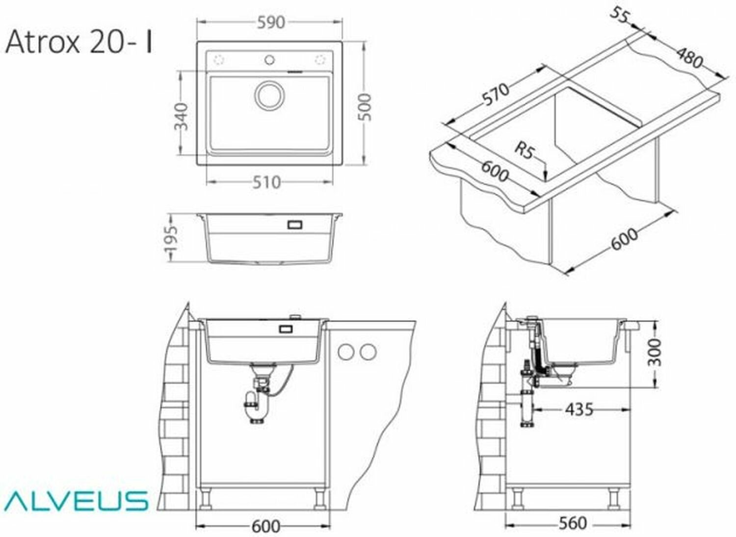 Мойка для кухни Alveus Atrox 60 см 1131994