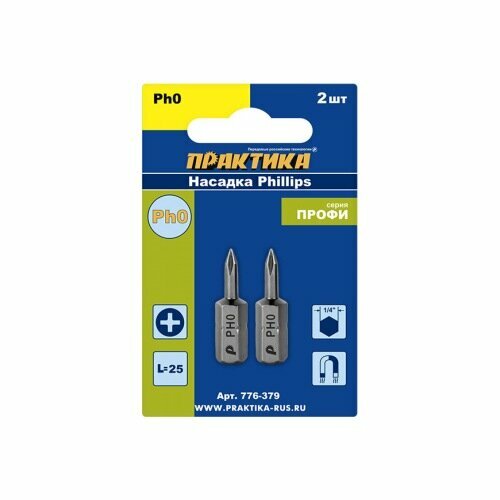 Бита "Профи" PH-0 х 25мм (2шт), блистер ПРАКТИКА 776-379